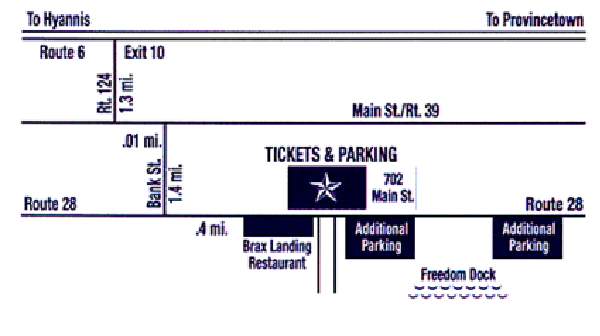 Look for the Freedom Cruise Line Ticket Office approximately 1/2 mile on left. We are located at Saquatucket Harbor in Harwich Port.